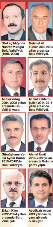 Otelin yapımına başlandığı 1997 yılından bu yana Bolu’da 10 vali görev yaptı. 1999’da otel açıldığında Nusret Miroğlu görevdeydi.