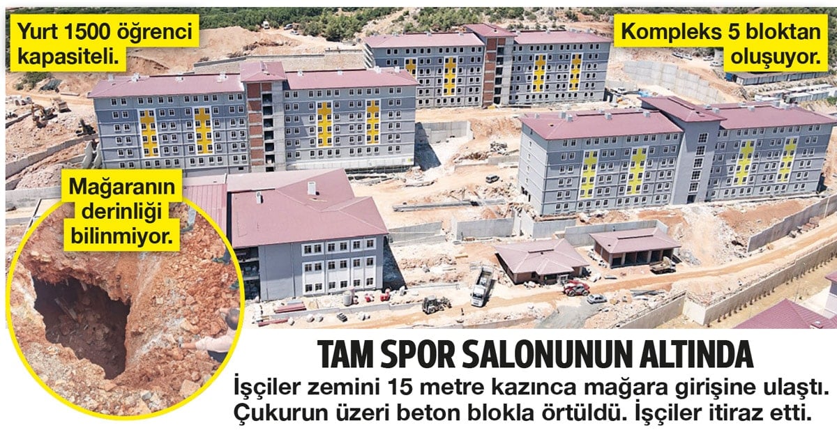 Kız yurdu inşaatında mağara ve mezar bulundu. Deprem riski umursanmadı. İşçiler, “Bina kızlara mezar olabilir” diye uyardı. Kazı sırasında bulunan mağara mezar, beton dolguyla kapatıldı. Zemin etüdü yapılıp yapılmadığı ve mağaranın nereye kadar uzandığı ise bilinmiyor.