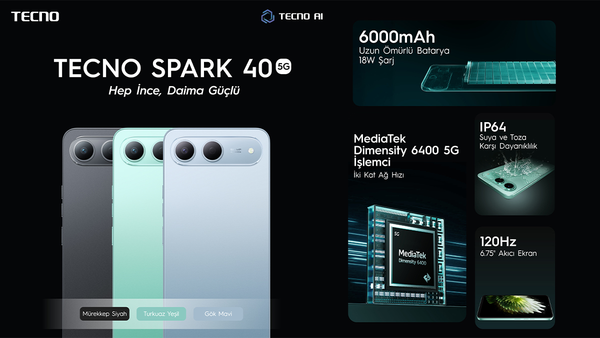 TECNO SAPRK 40 5G, pazarda kanıtlanmış bir başarı hikayesi sunarak, teknolojiyi erişilebilir hale getirme misyonunu sürdürüyor ve günlük kullanımdan beklentisi yüksek olan tüm kullanıcılar için güçlü bir alternatif olmayı sürdürüyor.